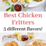 Chicken fritters are made with diced boneless and skinless chicken breast combined with flour, eggs, spices, and/or vegetables. The mixture is then pan-fried until golden, just like any other type of fritters. You may also like our cauliflower fritters or zucchini fritters!