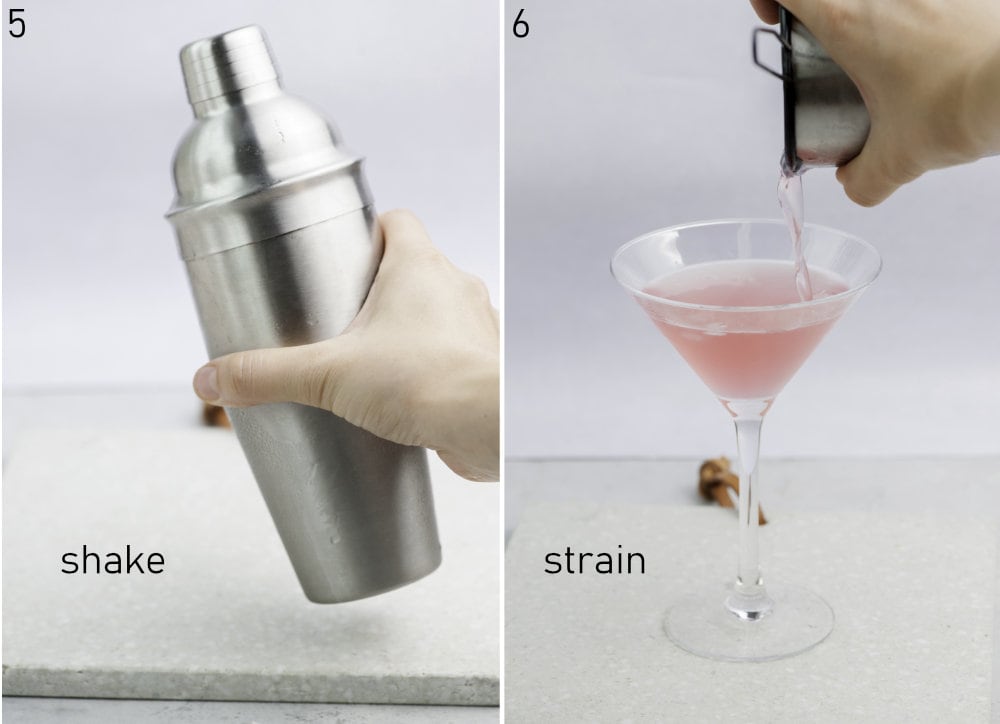 If using a French-style cocktail shaker (pictured) or a regular cocktail shaker with a Hawthorne strainer you may still get some lime particles in your drink. So you may want to strain your cocktail again through a fine-mesh strainer.