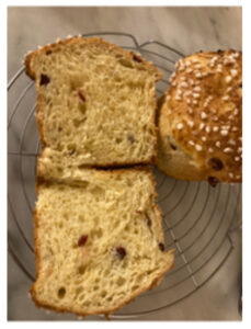 STEP 12: Knead the cranberries into the dough by hand (sprinkle the dough with more flour if it’s sticky, but don’t add much).