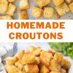Homemade croutons are so easy and quick to prepare but they taste SO MUCH better than store-bought. Seriously, it’s so hard to stop snacking on them. You’ll want to add them to salads, soups, or eat them straight from the baking sheet! It’s a great idea to use up leftover bread.