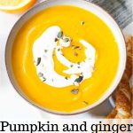 This pumpkin ginger soup is delicious, warming, and so flavorful. Ginger adds warmth and a spicy kick and orange a hint of sweetness. This soup is so easy, it’s made with just 5 main ingredients. You’ll love it! I like to serve it with these puff pastry cheese straws.