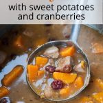 Flavorful and hearty turkey stew (I used turkey leg meat) with sweet potatoes and cranberries. Stewing turkey leg meat it’s the best way to treat this piece of meat. It comes out so tender. We really liked this turkey roulade with butternut squash and cranberries, so I wanted to make something similar. This stew was spot on!